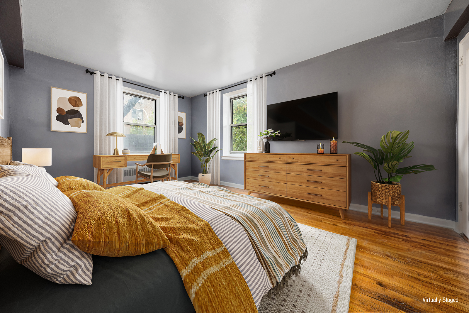 This well-renovated, light-filled one-bedroom home wraps the east and south-facing corner of The Versailles Cooperative and offers quality finishes. Anchored by hardwood floors, its flowing floor plan affords each room unique privacy, ample light, a dedicated dining area, and double exposures.