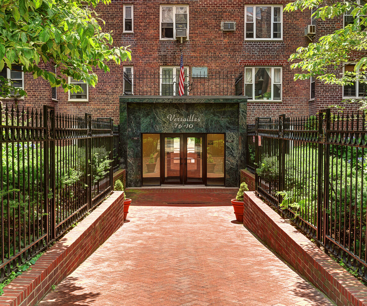 Superbly located a few blocks from the express trains and all local amenities, the Versailles Cooperative is moments away from the renowned Jackson Heights Greenmarket and Travers Park. It is wrapped around a beautifully landscaped garden and offers amenities such as a laundry room, a live-in super, and wait-list parking.