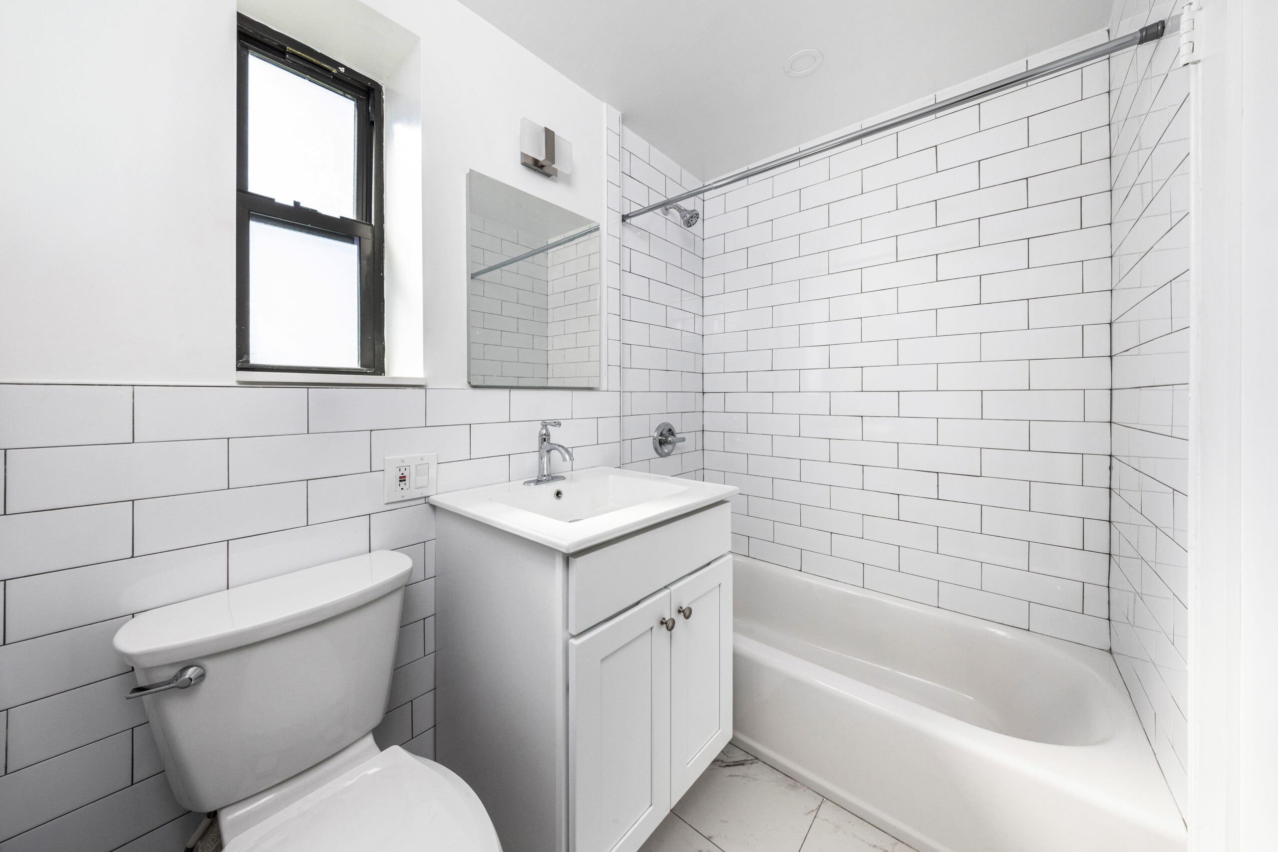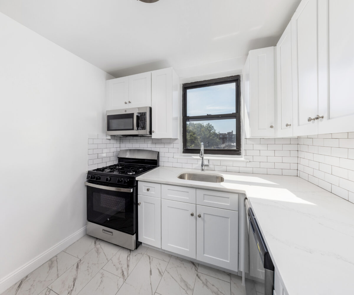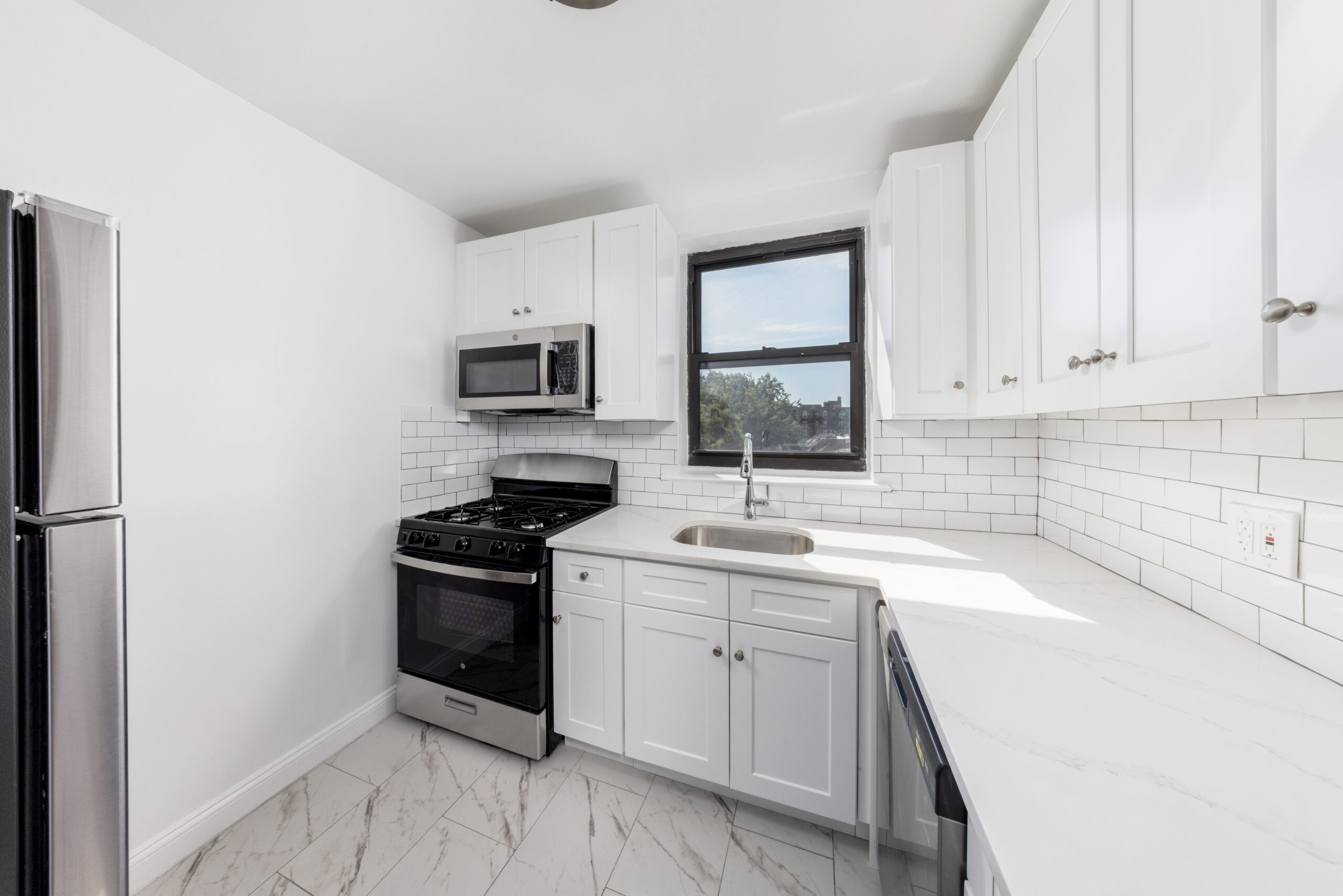 No detail was overlooked in creating this wraparound home. Enter into a gracious foyer, then proceed into a grand living space, anchored by hardwood floors, lit by both natural and ceiling lights. Adjacent to the living space is the custom windowed kitchen, which features a complete line of quality stainless steel appliances, including a dishwasher. Stone counters pop against a beautifully laid subway tile backsplash, while the custom shaker cabinets frame the room. Both bedrooms have extraordinary views and light, while the spa-like bath dazzles with floor-to-ceiling large subway tile, quality fixtures, and finishes.
